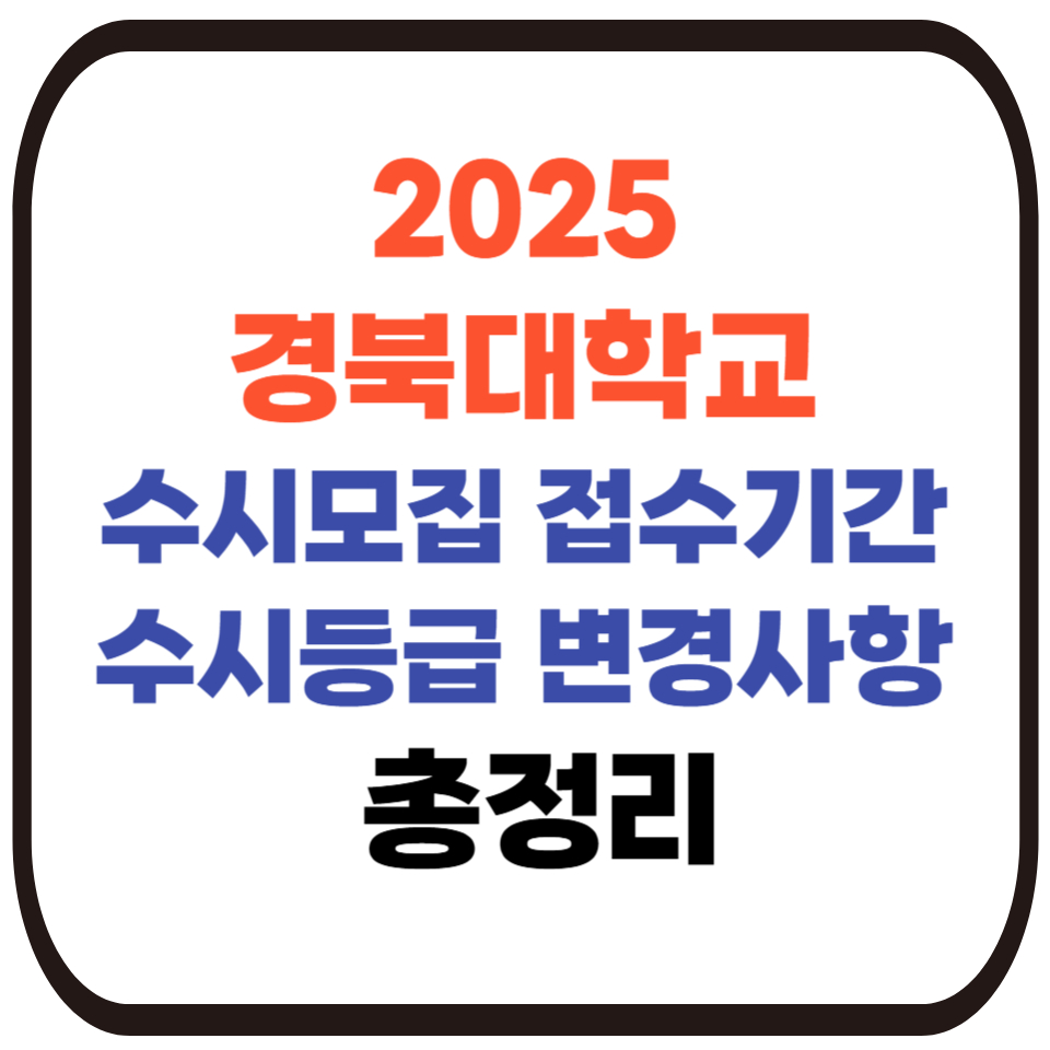 이 글에서는 2025 경북대 수시모집 일정부터 제출서류, 전형별 주요 내용, 전형 간 변경사항, 그리고 내신·등급 전략 팁까지 핵심 정보를 한눈에 볼 수 있도록 정리했습니다. 수시 준비 중인 수험생과 학부모는 꼭 끝까지 확인해 보세요!