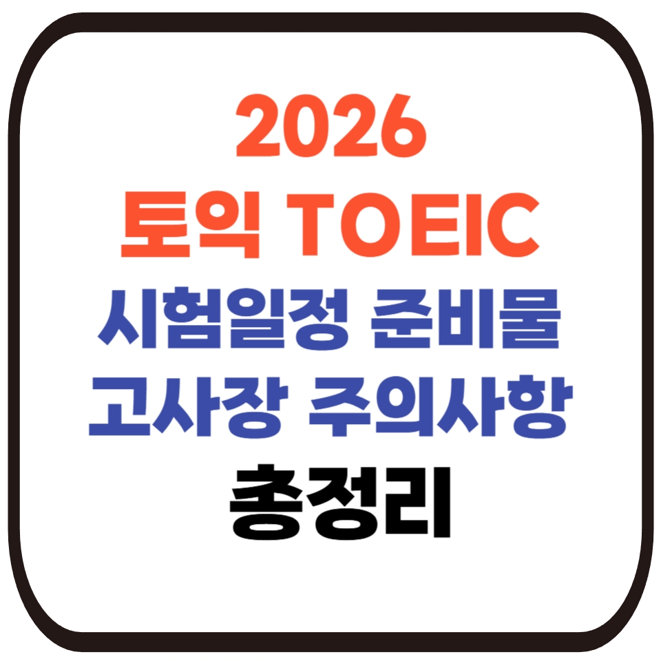아래는 2026년 토익(TOEIC) 시험 일정, 준비물, 고사장 정보 및 주의사항을 한눈에 정리한 내용입니다. 취업 준비·스펙 관리·토익 점수 갱신을 위한 준비에 꼭 참고하세요!